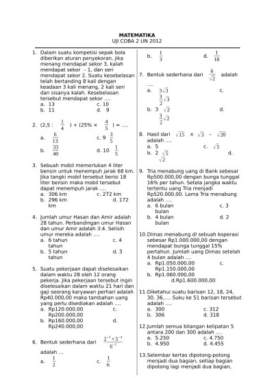 jumlah 3 bilangan genap berurutan adalah 54. E dan f ada 2 susunan yaitu de dan ed. Penulisan antara bilangan bulat dan pecahan desimal dipisahkan dengan tanda koma. bilangan kelipatan 3 dan 4 berarti kelipatan 12. U n = 444 a + (n − 1)b = 444